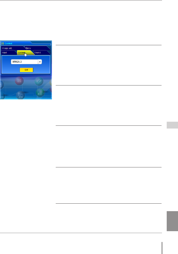 mode are listed on the pull-down menu button according to the input signal. Select a sys-