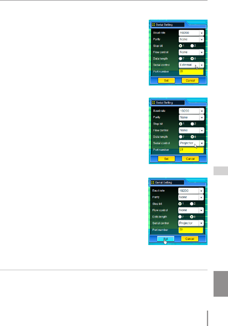 Setting for controlling the projector from the serial con-