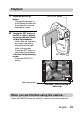 PLAYING BACK ON A TV i After connecting the camera to the television, switch the TV input to the terminal to which the camera is connected. i When the camera is connected to a TV, no image appears on the camera’s monitor. i The playback method is the same as when viewing images on the camera’s monitor. Audio playback: see page 82 i The same playback procedure as when playing back with the camera is used to play back audio recordings as well.
