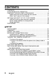 CONTENTS CONTENTS ........................................................................................... 1 QUICK SEARCH BY OPERATION ........................................................ 7 CHECKING THE INCLUDED ACCESSORIES .................................... 13 Media cards that can be used with this camera ............................ 17 What “card” means in this manual ................................................ 17 GETTING THE MOST OUT OF YOUR CAMERA ...............................