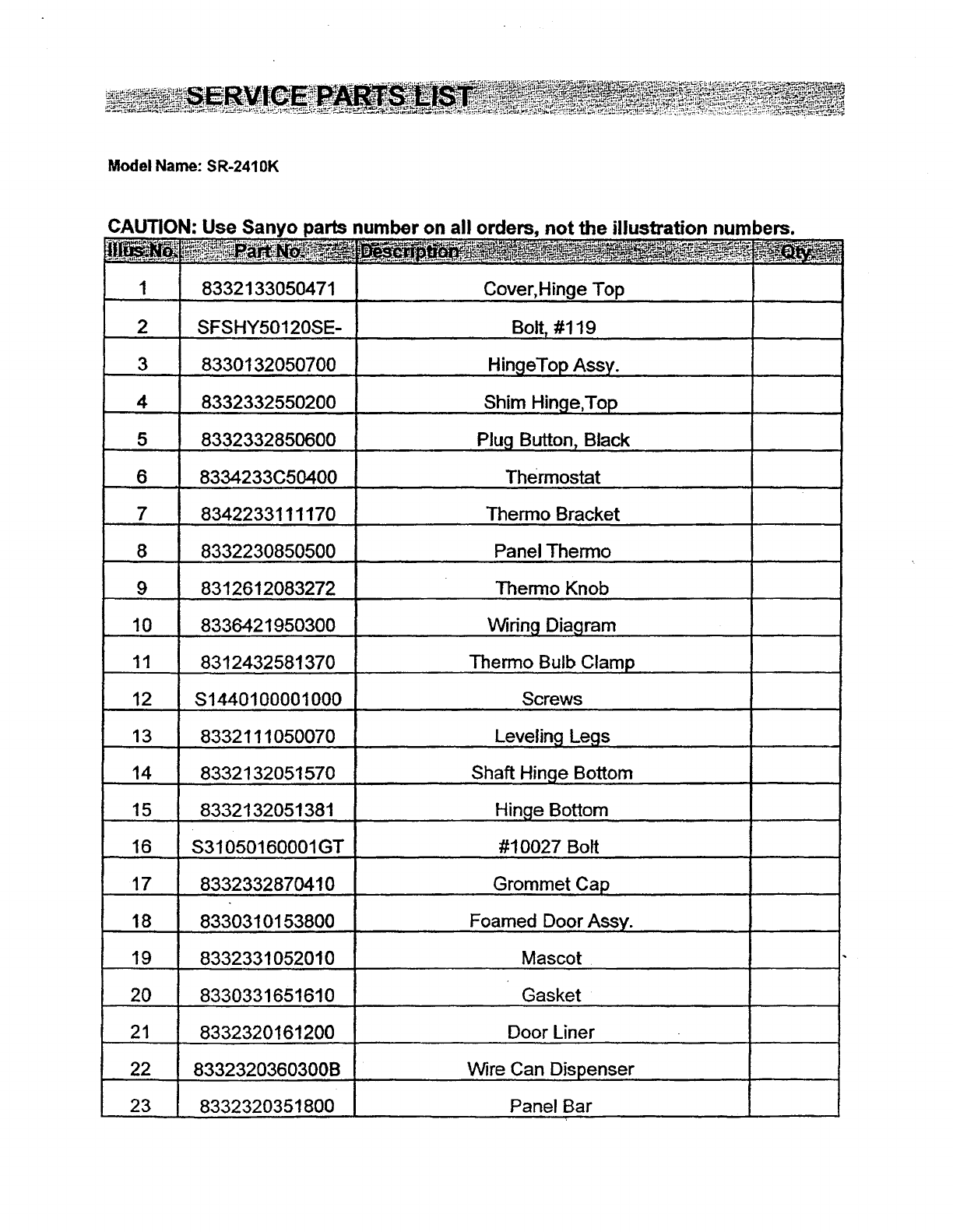4 8332320351900A Door Bar 25 | ~8332320351600 Door Panel Bottom 26 Screw 27 8332220551100D Shelf 28 8332220551200 Shelf, Bot torn 29 8330420250700 Drier 30 8332430650301 | Grommet Compressor Mounting #10196, no hole 3 8312430870001 Brit, Compressor Mounting #10194 32 8312430683101 Grommet, Compressor Mounting #10195 33 0OBC8035710210W Compressor 34 4BC4820001870 Overload relay 35 4204947370 PTC Theorist 36 8012892670200 Clip, relay cover 37 8332533250800 Relay cover 38 SFSHYS0120SEBolts 39 8332120150271C C