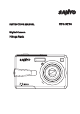 Specifications General Optics Camera Features Resolution / Image Type 7M Pixels / 1/2.5” CCD LCD 2.4”TFT, 110,000 Pixels Dimensions 92.9(W)x60.4(H)x22(D)mm Exterior Casing Plastic Housing Aperture Wide: F2.8 Tele: F4.9 Optical Zoom Up to 3x Digital Zoom Up to 5x Focal Length Wide(W): 35mm, Tele(T): 106mm Focus Mode Normal: 50cm to infinity Macro: 10cm ~ 50cm Shutter Speed 2 ~ 1/1500 Sec.