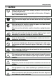 Safety Information Safety Information When using your machine, the following safety precautions should always be followed. Safety during Operation In this manual, the following important symbols are used: R WARNING: Ignoring this warning could cause serious injury or even death. R CAUTION: Ignoring this caution could cause injury or damage to property. Examples of Indications R Symbols R mean a situation that requires you take care. v Symbols v mean “Hot surface”.