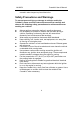 LAUNCH CreaderV User’s Manual reserved to make change at any time without notice. Safety Precautions and Warnings To prevent personal injury or damage to vehicles and/or the CreaderV, please read this instruction manual first carefully and observe the following safety precautions at a minimum whenever working on a vehicle: z z z z z z z z z z z Always perform automotive testing in a safe environment. Do not attempt to operate or observe the tool while driving a vehicle.