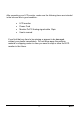 Appendix B Supported Timing Item Standards Resolution Dot Clock (MHz) 1 2 3 4 5 6 7 8 9 10 11 12 13 14 15 16 17 18 19 NEC PC98 MAC 13" mode MAC 16" mode MAC 17" mode VGA VGA VGA VESA VESA VESA SVGA VESA VESA VGA XGA VESA VESA VESA VESA 640x400 640x480 832x624 1024x768 640x350 640x400 640x480 640x480 640x480 800x600 800x600 800x600 800x600 720x400 1024x768 1024x768 1024x768 1280X1024 1280X1024 21.05 30.24 57.28 80.00 25.18 25.18 25.18 31.50 31.50 36.00 40.00 50.00 49.50 28.32 65.00 75.00 78.