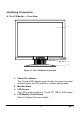 Identifying Components A. The LCD Monitor — Front View 3 1 4 2 Figure 1-1: The LCD Monitor Front View 1. Power-On Indicator This Circular LED indicator green lit when the power is on and orange lit when the LCD monitor is in power-saving mode. 2. Monitor Stand 3. LCD Screen The LCD monitor screen is a 17-inch TFT 1280 x 1024 screen. 4. LCD Monitor Control Panel Refer to Chapter 2 for more details. 3 Rev.