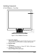 Identifying Components A. The LCD Monitor — Front View 3 1 4 2 Figure 1-1: The LCD Monitor Front View 1. Power-On Indicator This Circular LED indicator green lit when the power is on and orange lit when the LCD monitor is in power-saving mode. 2. Monitor Stand 3. LCD Screen The LCD monitor screen is a 19-inch TFT 1280 x 1024 screen. 4. LCD Monitor Control Panel Refer to Chapter 2 for more details. 3 Rev.