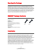 Opening the Package The QUASAR TV is packaged in a carton. Any standard accessories are packed separately in another carton. The weight of the TV is approximately 12.77 lbs. Due to the size and weight of the product, it is suggested that it must be handled by a minimum of 2 or more persons. Since the glass can be easily scratched or broken, please handle the product gently. Never place the unit on a surface with the glass facing downwards unless it is on protective padding.
