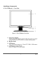 Identifying Components A. The LCD Monitor — Front View 3 1 4 2 Figure 1-1: The LCD Monitor Front View 1. Power-On Indicator This Circular LED indicator green lit when the power is on and orange lit when the LCD monitor is in power-saving mode. 2. Monitor Stand 3. LCD Screen The LCD monitor screen is a 17-inch TFT 1280 x 1024 screen. 4. LCD Monitor Control Panel Refer to Chapter 2 for more details. 3 Rev.