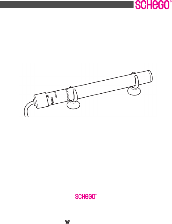 schego_Heizstab_nur DE.book Seite 1 Mittwoch, 9. April 2014 12:40 12 Heizer/Titanrohr Bedienungsanleitung Heizer/Titanrohr für Aquarien und Terrarien Schemel & Goetz GmbH & Co. KG Elektrogerätebau Schreberstraße 14 D-63069 Offenbach am Main : +49 (0) 69 - 83 57 48 Fax: +49 (0) 69 - 84 71 81 e-mail: info@schego.de http://www.schego.