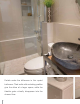 QUADEC square-shaped profiles taper of the tile edges of the vanity and niche while DILEX-BWA eliminates the need for caulking between the vanity and pony wall.
