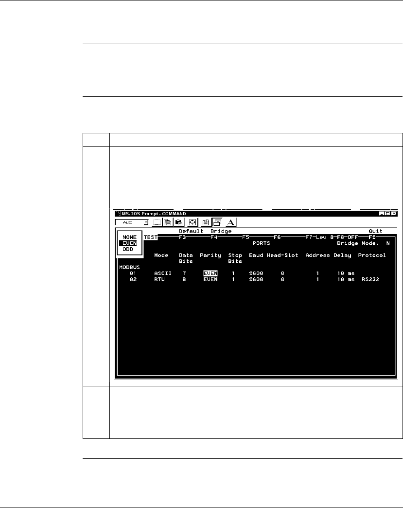 1 Place the cursor on the current Parity entry for the Modbus port you want to enter.