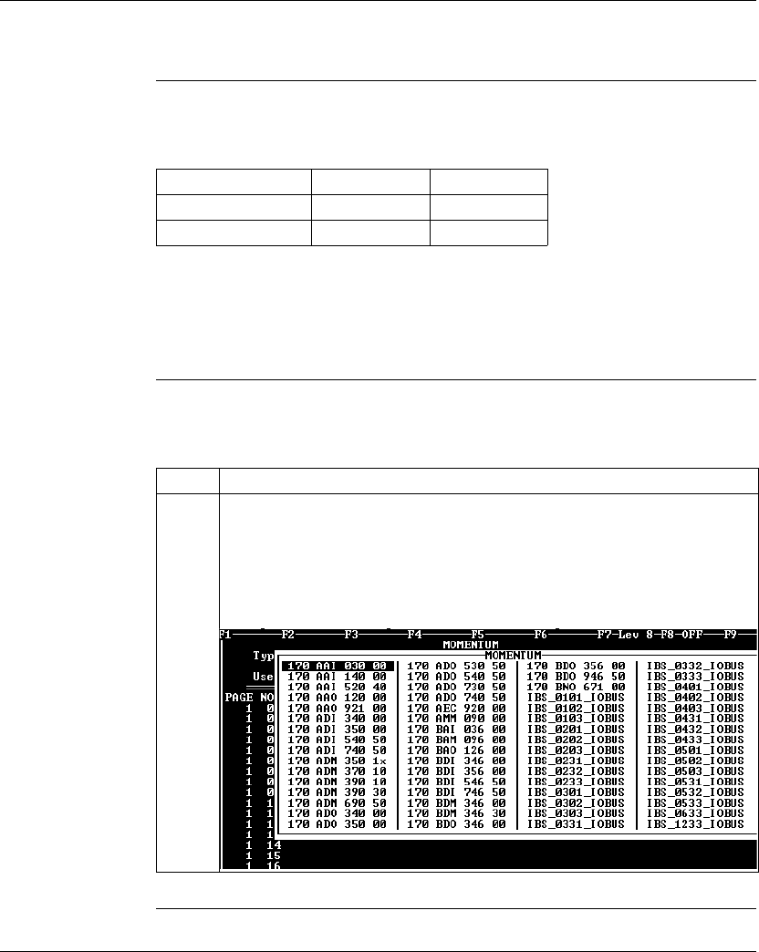 1 Place the cursor in the Module column in row 1 (for NODE 01) and push the <F8>