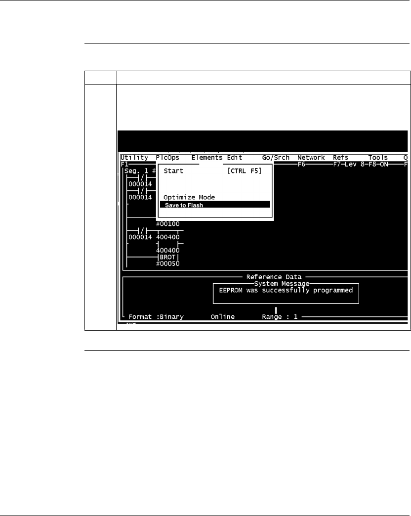 Result: The PLC will save your application logic and state RAM table to Flash.