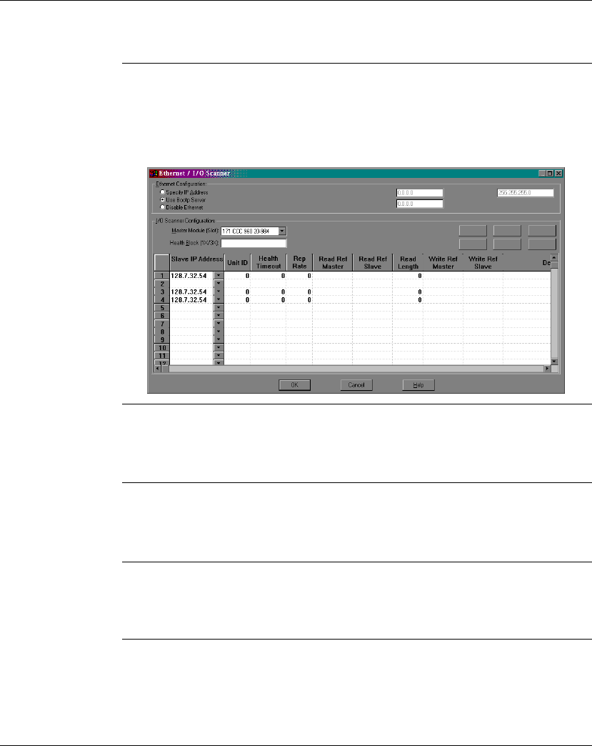 IP Address Type the IP address of the slave module in the IP address column. This address