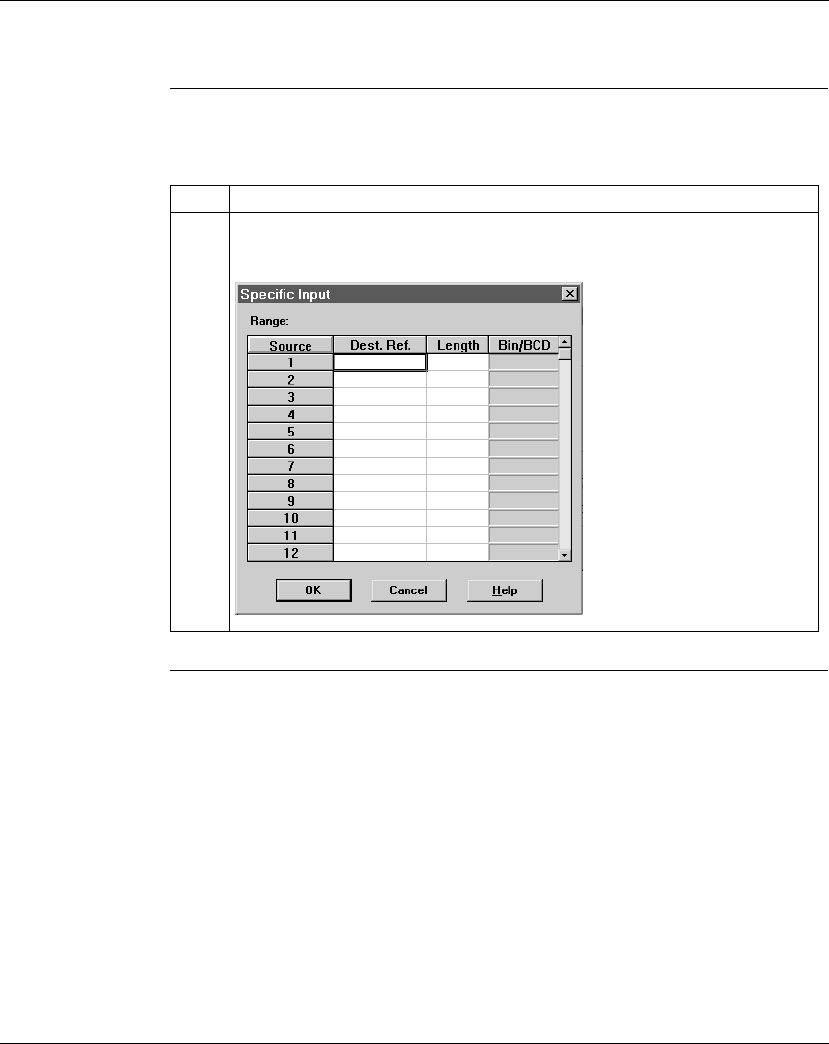 Procedure Follow the steps in the table below to define the specific input, starting from the