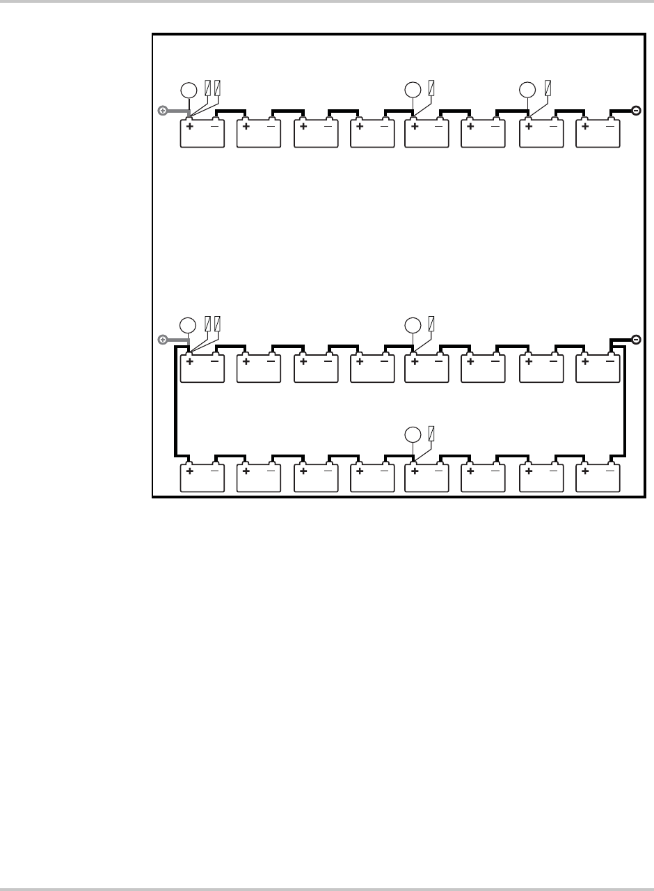 By keeping track of the mid-point Va1 & Va2 between the two battery strings, it is