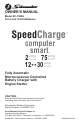 OWNER’S MANUAL Model SC-7500A For 6 and 12-Volt Batteries SpeedCharge ™ computer smart amp amp ™ 75 2 amp 12 30 ENGINE S T A R T S L O W CHARGE F A S T CHARGE Fully Automatic Microprocessor Controlled Battery Charger with Engine Starter CAUTION: Read all Safety Rules and Operating Instructions, and follow them with each use of this product. Schumacher Electric Corporation Mount Prospect, IL 60056 U.S.A. Send Warranty Product Repairs to: Customer Service Returns P.O. Box 280,1025 E.
