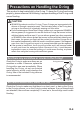 Safety Precautions Do not rest heavy weight on the product. It might deform the outer casing, damage internal parts, make the waterproofing fail, or result in fire or electric shock. Please note that some marks may be left on the camera scraping against the dials or gears of the housing. Handle the product carefully so as not to scratch the front port, the lens, the flash window or the finder.