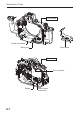 Opening and Closing the Housing Closing the locking latches 1 2 Align the front case with the rear case and press them together First, put the right and left locking latches on the hooks ( ), and close the locking latches simultaneously ( ) CAUTION Before aligning the rear case and front case, make sure there are no specks of dust, scratches, or deformities on the O-ring and the O-ring contact surfaces. Check to make sure that the locking latches are securely locked.