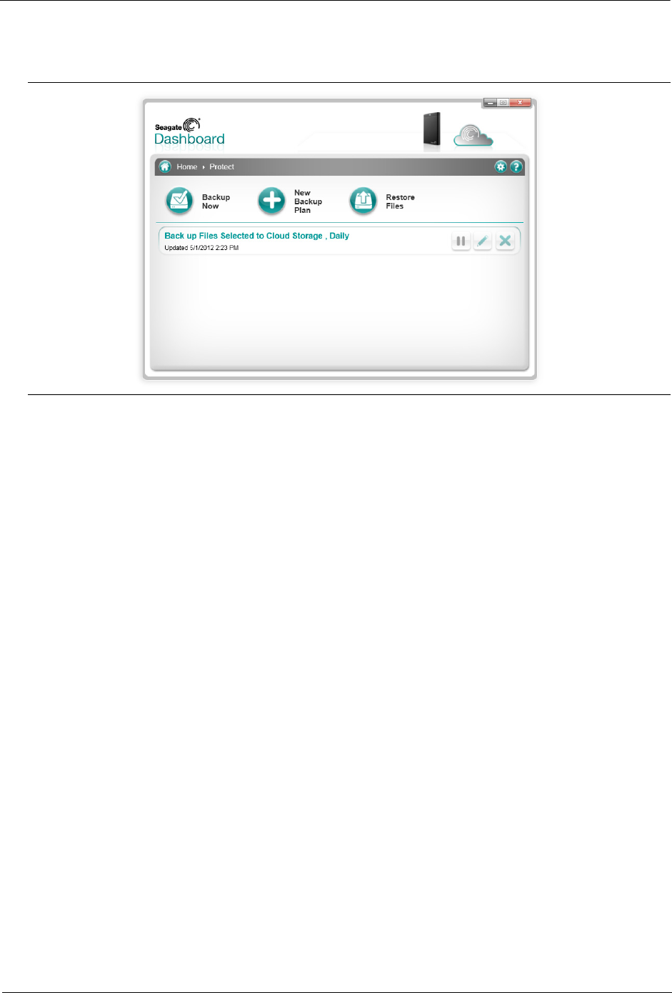 8. After you create a backup plan, Seagate Dashboard shows its status on the Protect screen,
