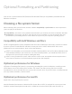 Op onal Forma ng and Par oning Your device is preformatted exFAT (Extended File Allocation Table) for compatibility with both Mac and Windows computers. Choosing a file system format When choosing a file system format, consider whether compatibility or performance is more important in your everyday use of the drive. Compatibility—You need a cross-platform format because you connect your drive to both PCs and Macs.