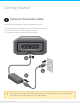 Ge ng Started Connect the power cable Connect the included power supply in the following order: A. Connect the power supply to Lyve Drive Shuttle's power input. B. Connect the power cord to the power supply. C. Connect the power cord to a live power outlet. Use only the power supply provided with your device. Power supplies from other Seagate and third-party devices can damage your Lyve Drive Shuttle.