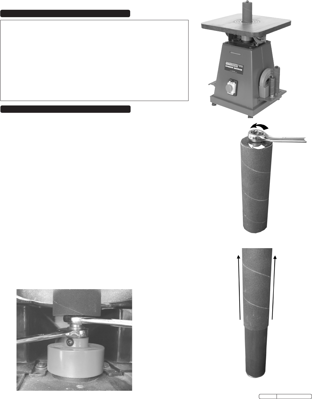 with an oval cutout. For normal sanding with the table flat use the insert with the round cutout.