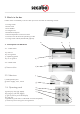 ® 2. What‘s in the box Please check immediately to ensure that you have received the following articles: • Cutting Plotter • Power Lead • Knife Holder • 3 Drag Knives • Penholder and pens • Serial and parallel connection lead • CD Rom with drivers and Operating Guide • Cutting Plotter Stand (dismantled) (option) a) 3. Description of Machine b) c) 3.1. Front view a) Case lid b) Cutting head c) Operating panel d) Cut-off groove d) 3.2. Rear view e) Pressure rollers 3.3.