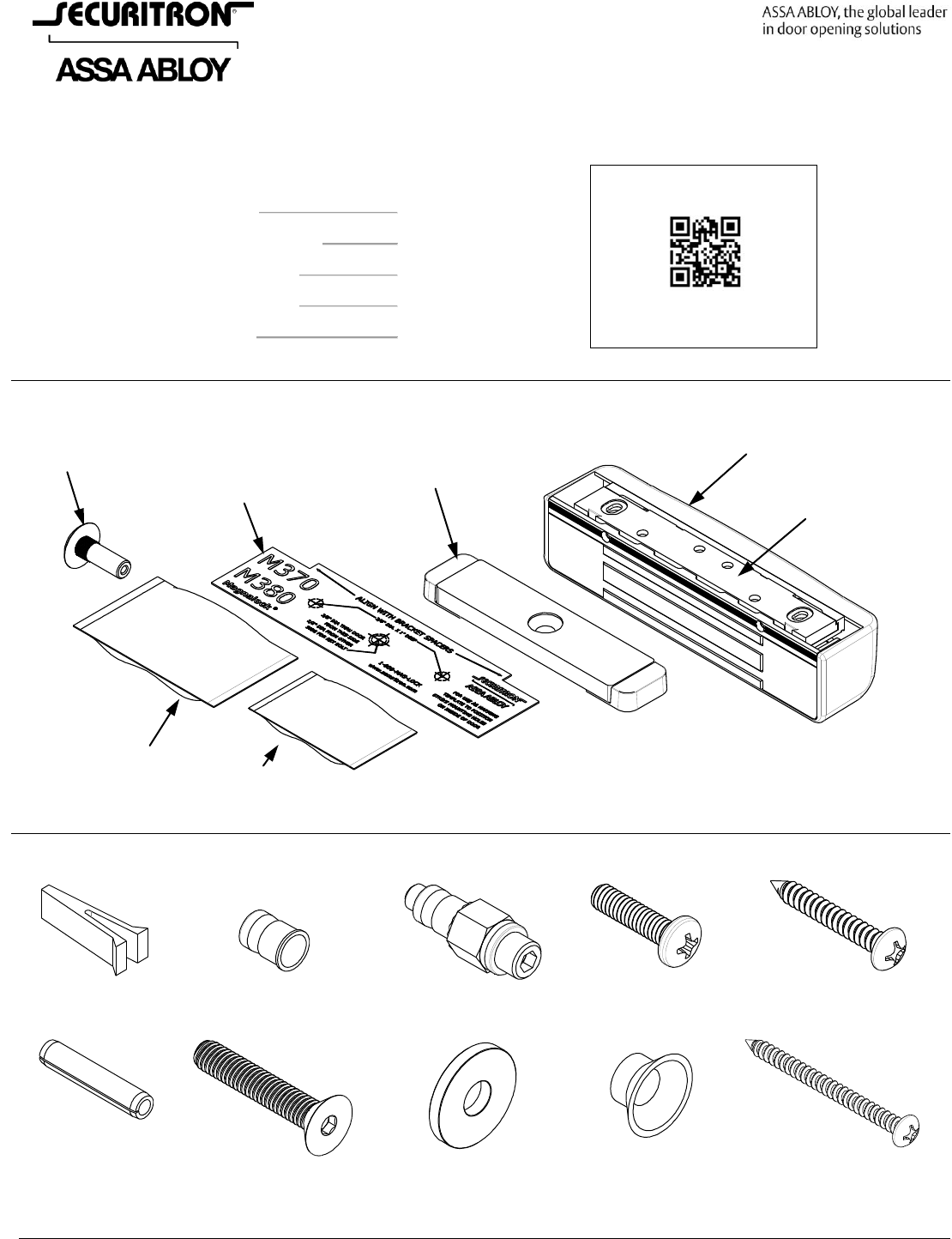Securitron Magnalock Corp. www.securitron.com Tel 800.624.5625 techsupport@securitron.com M380BD/C/C2/X MAGNALOCK ® SERIES Installation Instructions Table of Contents Specifications 2 Configuring Options 3 Installation Guide 9 Wiring Diagram 17 Error Codes 20 Scan this QR Code for a guided installation video. Alternatively Quick Clips are available in each section.
