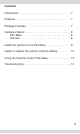 Contents Introduction . . . . . . . . . . . . . . . . . . . . . . . . . . . . . . . . . 7 Features. . . . . . . . . . . . . . . . . . . . . . . . . . . . . . . . . . . . 7 Package Includes . . . . . . . . . . . . . . . . . . . . . . . . . . . . . 7 Hardware Basics . . . . . . . . . . . . . . . . . . . . . . . . . . . . . 8 Pan Base . . . . . . . . . . . . . . . . . . . . . . . . . . . . . . . 8 Remote. . . . . . . . . . . . . . . . . . . . . . . . . . . . . . . . . 8 Install the camera to the Pan Base . . .