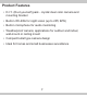 SPECIFICATIONS Image Sensor Video Resolution Horizontal Resolution Audio Lens Waterproof Viewing Angle Connector Interface Power Consumption Operating Temperature Operating Humidity Dimensions (WxDxH) Weight (Gross) 1/4” Color CMOS 510x492 (NTSC) 420 TV Lines Microphone built-in 3.6mm IP54 45° Audio/Video(RCA) 200mA(IR ON)/80mA(IR OFF) -10°C~+50°C / +14°F~+122°F 85%RH 2.4”x1.4”x1.4” (camera body) 1.