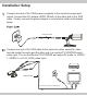 Installation Setup Connect one end of the 100ft power receptacle to the camera’s power input socket, connect the A/C adapter (8VDC 300mA) to the other end of the 100ft cable. Finally, connect the power adapter to an electrical outlet as illustrated below. 100ft AVP cable Connect one end of the 100ft cable to the camera’s yellow socket for video and red socket for audio and the other end to a monitor/TV/VCR/DVR audio/ video input. Turn on the Monitor/TV/VCR/DVR and select AV mode, ie.