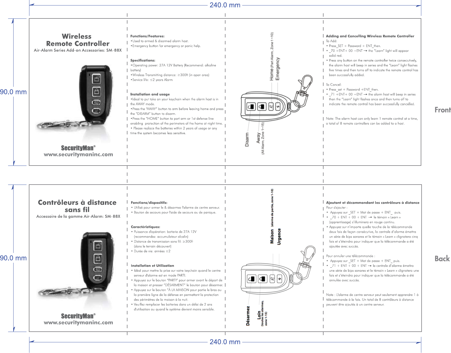 Add-on Wireless Remote Controller with Panic Button for Air-Alarm II Series