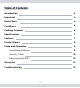 Table of Contents Introduction 4 Important 4 Restrictions 4 Conditions 5 Package Contents 6 Specifications 7 Features 7 Product Basics 8 Setup and Operation 9 9 Installating Batteries Security Code 10 Mounting SolarPIR™ 10 Operation 12 Troubleshooting 13 3