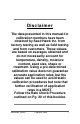 Disclaimer The data presented in this manual for calibration numbers have been obtained by Seed Hawk Inc. from factory testing as well as field testing and from customers. These values are based on averages obtained and do not necessarily account for temperature, density, moisture content, seed size, shape or treatment.