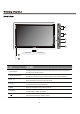 1 LED Indicator Illuminates blue when the TV is turned on. I lluminates red when theTV is in standby mode.The LED will illuminate blue when the timer recording has started in the standby mode. 2 IR( Infrared Receiver) Receives IR signals from the remote control. Do not put anything near the sensor, as its function may be affected. 3 VOL +/ 4 CH - / Adjust the volume. Select and adjust a setting in the OSD menu. Select a channel. Select a sub-menu of the OSD menu.