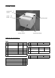 Printer Parts paper roll cover cutter cover 1 2 5 control panel 3 power switch 4 cover open lever DIP Switch Tables Serial SW Function ON OFF SW Function ON 1-1 Power switch function Disabled Enabled 2-1 Reserved Fixed to Off. 1-2 Interface condition selec- by DIP tion switch by memory switch 1-3 Handshaking XON/XOFF DTR/DSR 1-4 Data word length 7 bits 8 bits 1-5 Parity check Enabled Disabled 1-6 Parity selection Even Odd 1-7 Transmission speed (See table below.