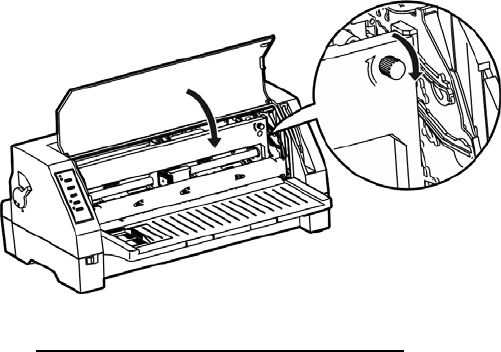 5 Hold the ribbon cartridge with the knob facing upwards and turn the ribbon knob