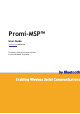 Configurable ranges: Baudrate 1200 ~ 115200 bps Character size 8, 7, 6, 5 bits Parity Check None / Even / Odd Stop Bit 1 bit or 2 bits Hardware (RTS/CTS), Flow Control Software (XOn/Off), None If you enable AT command interface, AT commands which are compatible with Promi-SD can be used with Promi-MSP. Please refer to Promi-MSP AT command list in chapter 6. For applying changed configuration, please RESUPPLY the power, then Promi-MSP will start to operate as RS232 mode.