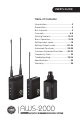 Specifications AWS-2000T Transmitter Reference input level -26 dBV Frequency response 80 Hz to 15 kHz Signal-to-noise ratio <100 dB Pilot tone frequency 32.768 kHz Power requirement 2.0 to 3.6 V Operating temperature 32°F to 131°F (0°C to 55°C) Dimensions without antenna (H × W × D) 2.8 × 2.3 × 0.8 in. (7 × 5.08 × 2 cm) Weight 3 oz. (84 g) AWS-2000R Receiver Frequency response 80 Hz to 15 kHz Total harmonic distortion <0.9% Pilot tone frequency 32.768 kHz Power requirement 2.0 to 3.