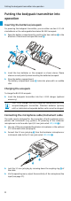 Using the bodypack transmitter Using the bodypack transmitter To establish a transmission link, proceed as follows: 1. Switch the receiver on (see the instruction manual of the receiver). 2. Switch the bodypack transmitter on (see below). The transmission link is established and the receiver’s RF level display “RF” reacts. Switching the bodypack transmitter on/off 왘 Push the two battery compartment catches compartment cover .