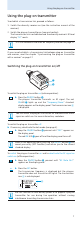 Using the plug-on transmitter To activate the RF signal: ON/OFF SET 왘 Press the ON/OFF button. “RF Mute Off?” appears on the display panel. 왘 Press the SET button. The transmission icon 햵 is displayed again. Deactivating the lock mode temporarily You can activate or deactivate the automatic lock mode via the “Auto Lock” menu item (see page 14). If the lock mode is activated, you have to temporarily deactivate it i0n order to be able to operate the plug-on transmitter: ON/OFF 왘 Press the ON/OFF button.