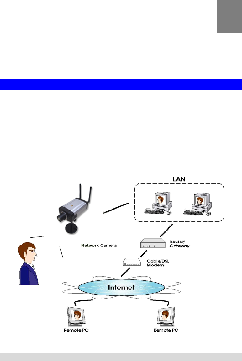 LAN, the Internet, and for the Network Camera, an 802.11g Wireless LAN.