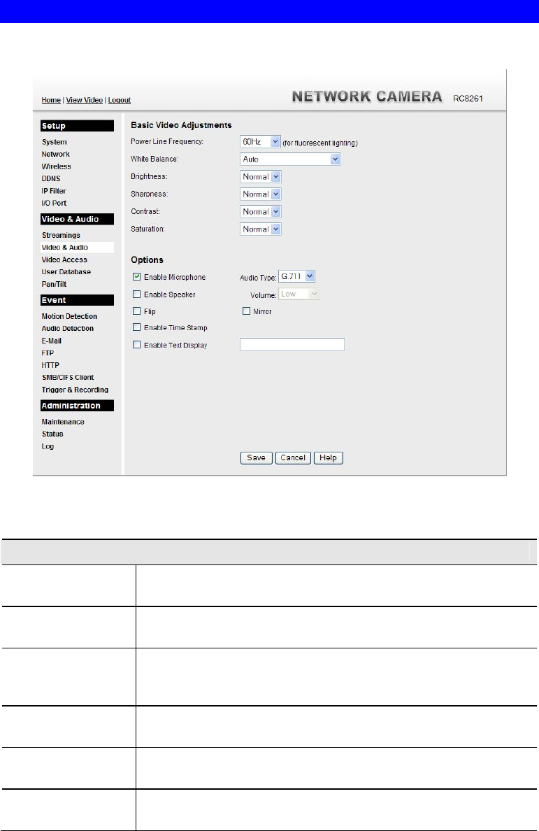 Figure 34: Video & Audio Screen
