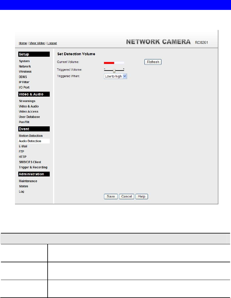 This screen is displayed when the Audio Detection option on the Event menu is clicked.