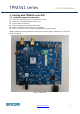 TPM541 series Cat-M1/NB Module 3. Starting with TPM541 series EVK 3.1. Hardware preparation and setup Attach the included antenna to the SMA connectorJ21 Plug-in the included DC adapter to DC Jack J1 Or each UART to USB cable. Plug-in 3FF SIM card to J17(back side of EVK) Switch on S2(Power switch) to turn on the module. There is no need to turn on S2 while using USB cable to power up EVK Module PWR1 LED will be lighted when power EVK successfully.