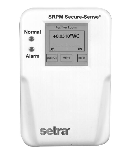 Setra SRPM Room Pressure Monitor The Setra SRPM Room Pressure Monitor is designed for critical low differential pressure applications that require stringent pressure monitoring and alarming. The SRPM can be configured to monitor positive, negative or neutral pressure in protected environments and hospital isolation rooms per CDC guidelines.
