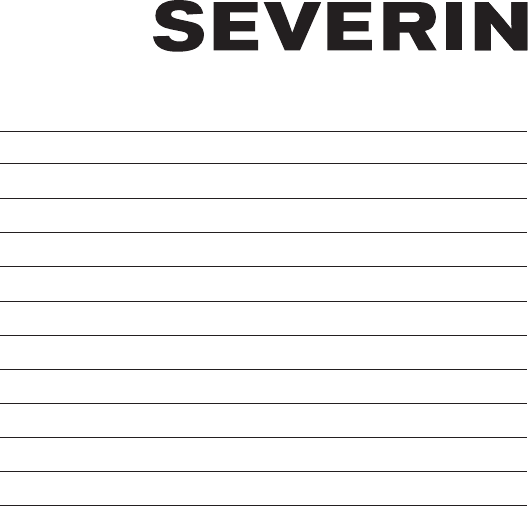 esine- ja henkilövahingoista lankeaa laitteen käyttäjälle. Tämä takuu ei vaikuta lakimääräisiin oikeuksiin eikä mihinkään muihin kansallisen lainsäädännön säätämiin tuotteiden ostoa koskeviin laillisiin kuluttajaoikeuksiin, joita tuotteen hankkijalla on. Valmistuttaja: Severin Elektrogeräte GmbH, Saksa Maahantuoja: Oy Harry Marcell Ab PL 63, 01511 VANTAA Puh (09) 870 87860 Fax (09) 870 87801 www.harrymarcell.fi asiakaspalvelu@harrymarcell.