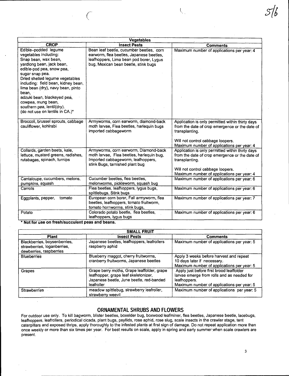 caterpillars and exposed thrips, apply thoroughly to the infested plants at first sign
